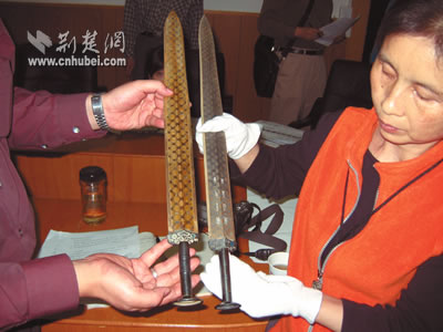 根據(jù)國家文物保護(hù)法實(shí)施條例,復(fù)制文物,須經(jīng)省級政府文物行政主管部門審核,報國務(wù)院文物行政主管部門批準(zhǔn)。荊州郢都青銅藝術(shù)研究所宣稱的“高仿真”越王勾踐劍,算不算復(fù)制?省博物館和該所各執(zhí)一詞。