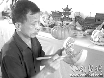 “老人家,這確實是用泡沫雕成的!比巳褐,走出一個人。他是這個“冒牌貨”的生產(chǎn)者,特意帶著自己的“作品”,來菜場一顯身手的。