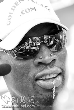 荊楚網(wǎng)消息(楚天都市報(bào))(記者門(mén)天清 實(shí)習(xí)生周玥廷 金天)昨日中午,有著8年NBA職業(yè)球員生涯,并擁有6枚NBA總冠軍戒指的前NBA巨星羅德曼一行從上海飛抵武漢,他將參加于今晚在漢舉行的“2005美國(guó)前NBA巨星王朝中國(guó)巡演”第一站的比賽。