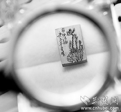 荊楚網(wǎng)(楚天都市報)(記者何君輝實習生周中華)寫意的中國山水畫,形態(tài)各異的花鳥蟲魚,憨態(tài)可掬的國寶大熊貓,風格迥異的詩詞……承載它們的,竟然是如米粒大小的象牙片或動物骨片。昨日,記者在微雕藝人童洪斌家中,手持放大鏡,領(lǐng)略了他的微雕絕活。