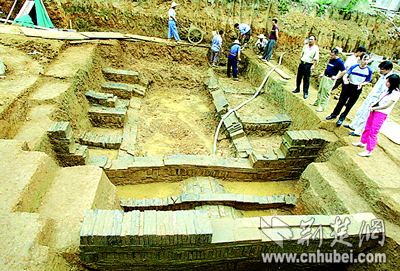 負(fù)責(zé)施工的武漢市文物考古研究所許主任說(shuō),經(jīng)鑒定,瓷片屬于宋代,可能是墓主的后人留下的。挖了半個(gè)月,至今仍未掘出古墓的整個(gè)墓緣?脊艑(zhuān)家稱,墓室規(guī)模龐大,結(jié)構(gòu)巧妙,墓主應(yīng)是南北朝時(shí)期很有身份地位的貴族。