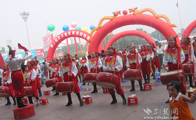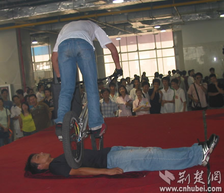 武漢市首屆時尚體育博覽會開幕式現(xiàn)場來自硚口區(qū)漢水橋街威風(fēng)鑼鼓隊在開幕式上進(jìn)行精彩的表演賽車俱樂部的車手和車模亮相東方神馬騎士俱樂部漂亮神氣的女騎士健身教練在進(jìn)行健身表演極限單車高手有驚無險的表演