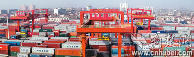 繁忙的武漢港集裝箱碼頭