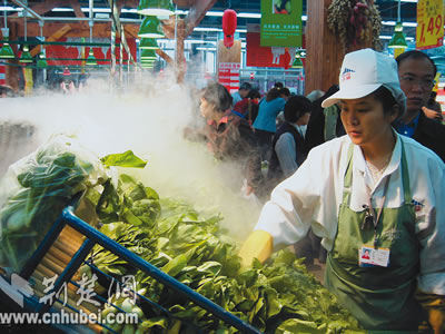 商業(yè)和物流的發(fā)展,讓購物環(huán)境變優(yōu)美了,品種更豐富了,市民可在明亮潔凈的超市中選購物品(下圖),甚至打個(gè)電話,點(diǎn)擊鼠標(biāo),足不出戶,需要的物品都能及時(shí)送到手中。武漢市正在發(fā)揮區(qū)位交通流通優(yōu)勢,成為萬商云集的“聚寶盆”。