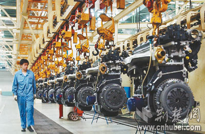 神龍汽車襄樊工廠發(fā)動(dòng)機(jī)生產(chǎn)線。本報(bào)記者楊平攝