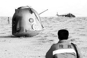 如今,“神舟”6號發(fā)射在即。與“神舟”5號相比,“神舟”6號的各種技術(shù)狀態(tài)又有質(zhì)的飛躍。為了滿足載人航天后續(xù)發(fā)展需要,我國已開始選拔培養(yǎng)首批女航天員。廣大航天工作者正在各自的崗位上,默默地奉獻(xiàn)著全部的心血和汗水。今后,他們還將用一個又一個飛天壯舉來證明中國人實現(xiàn)中華民族偉大復(fù)興的志氣、信心和能力! 2002年4月1日,“神舟”三號飛船在預(yù)定地域著陸。新華社發(fā)來源:《解放軍報》
