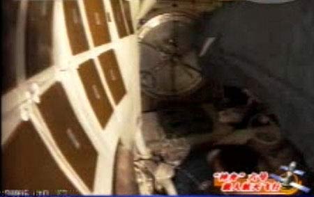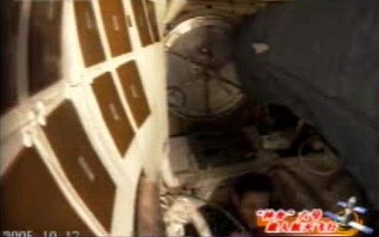 人民網(wǎng) 北京航天飛行控制中心10月13日訊 前方報(bào)道組報(bào)道:今天下午,神六首次傳回軌道艙畫面。