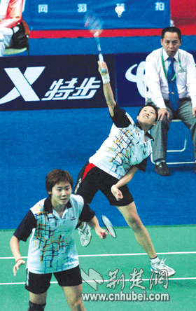在江蘇昆山舉行的羽毛球女雙決賽中,湖北省的高崚/魏軼力面對雅典奧運(yùn)會冠軍組合———廣東的楊維/張潔雯,毫不手軟,以15:10、17:15直落兩局,爆了一個小小的冷門,為湖北羽毛球隊(duì)奪得唯一一枚金牌。