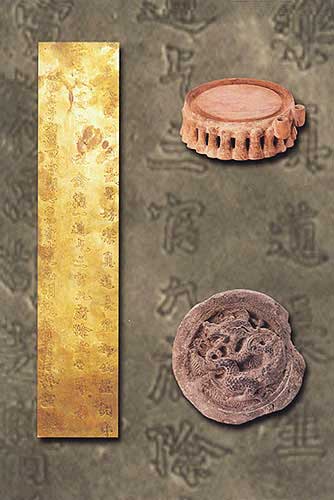 武則天金簡(jiǎn):祈福名刺(名片)(左,長(zhǎng)36.3厘米)
