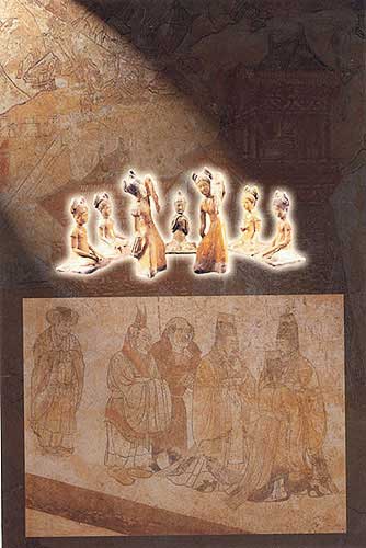 "客使圖"壁畫:(下)[相關(guān)鏈接]:20世紀中國百項考古大發(fā)現(xiàn)(1-20)20世紀中國百項考古大發(fā)現(xiàn)(21-40)20世紀中國百項考古大發(fā)現(xiàn)(41-60)20世紀中國百項考古大發(fā)現(xiàn)(61-70)20世紀中國百項考古大發(fā)現(xiàn)(71-80)81、云崗石窟(圖)82、龍門石窟(圖)83、敦煌莫高窟(圖)84、龍興寺佛教造像窖藏(圖)85、隋大興唐長安城遺址(圖)86、隋唐洛陽城遺址(圖)87、隋代虞弘墓(圖)88、唐代帝陵陪葬墓(圖)89、法門寺塔基與地宮(圖)90、阿斯塔那墓地(圖)91、渤海上京龍泉府遺址(圖) 92、南唐二陵(圖)93、白沙宋墓(圖)94、遼陳國公主墓(圖)95、龍泉青瓷窯址(圖)96、耀州窯遺址(圖) 97、西夏王陵(圖)98、古格故城遺址(圖)99、元大都遺址(圖)100、明定陵(圖)