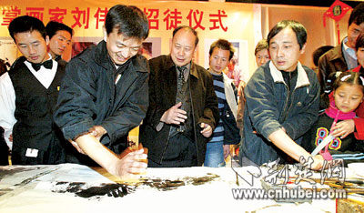 昨日上午10點(diǎn)半,武昌中南路上一家酒店迎來了30名特殊的客人。他們遠(yuǎn)的來自黃岡、荊門,特地趕來參加江城掌畫奇人劉偉新的現(xiàn)場(chǎng)招徒會(huì)。