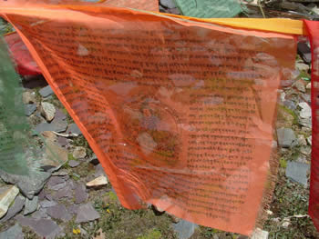西藏有隨處可見(jiàn)的掛在山頂山口、江畔河邊道旁以及寺廟等各處被認(rèn)為有靈氣地方的五彩經(jīng)幡。之所以被稱(chēng)作經(jīng)幡,是因?yàn)檫@些幡上面都印有佛經(jīng),在信奉藏傳佛教的人們看來(lái),隨風(fēng)而舞的經(jīng)幡飄動(dòng)一下,就是誦經(jīng)一次,在不停地向神傳達(dá)人的愿望,祈求神的庇佑。這樣,經(jīng)幡便成為連接神與人的紐帶。風(fēng)幡所在即意味著神靈所在,也意味著人們對(duì)神靈的祈求所在。風(fēng)幡寄托著人們美好的愿望。