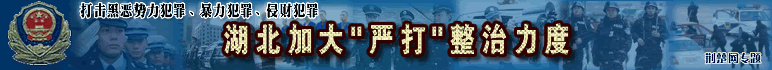 湖北今年嚴打目標確定 省公安廳透露,去冬今春,我省社會治安大局穩(wěn)定,刑事發(fā)案率有所下降,今年將加大嚴打整治力度,重點打擊黑惡勢力犯罪、暴力犯罪、侵財犯罪……[詳細]::武漢警方突襲濱江明珠娛樂城 抓獲45名吸毒者 ::全省交警嚴查盜搶車 一假警車上查處9塊假車牌::湖北圈定106個治安整治重點 武漢市5個地段在列 武漢嚴打建筑工地惡勢力 [市政法委 各區(qū)舉報電話][把黑惡勢力趕出工地訪談熱線開通]::武漢市政法委副書記:廣泛發(fā)動群眾鏟除沙霸石霸::漢陽鏟除沙石惡霸團伙 行兇兩年作惡無數(shù)(圖)