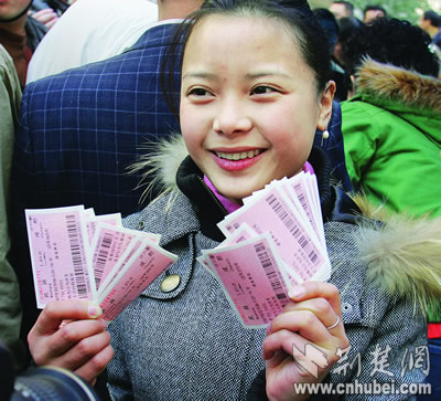 昨天上午9時(shí)許,在武漢某勞務(wù)公司工作的四川打工妹譚梅,攥著剛剛打印出來(lái)的一沓火車(chē)票,眉開(kāi)眼笑:她和她的同事們,今年春節(jié)回家不用再擔(dān)心車(chē)票了!