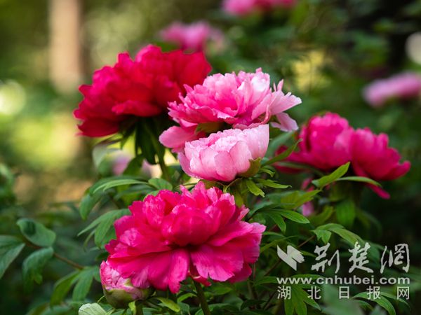清明期間,武漢植物園內(nèi)3000株牡丹全部盛放,驚艷國(guó)色等您來(lái)賞。‘寒櫻獅子’‘島錦’‘富貴滿堂’等牡丹清香四溢,風(fēng)姿綽約,盡顯牡丹的“國(guó)色天香”。武漢植物園牡丹園以保育展示江南品系、西南品系、中原品系和外國(guó)品系為主,目前保育牡丹3000株,有紅、粉、紫、墨、黃、白等花色,單瓣、荷花、繡球、臺(tái)閣等花型。色澤淡雅的保康牡丹輕逸出塵,一展牡丹的婉約風(fēng)姿。日本牡丹‘島錦’一花雙色,花朵在紅白相間,為少見的復(fù)色牡丹。還有墨色的‘珠光墨潤(rùn)’,不僅色彩驚艷,花瓣還有著綢緞般光澤,為黑牡丹中的佼佼者。綠牡丹‘綠幕隱玉’如翡翠瑩潤(rùn)通透,堪稱花中珍品。此外,園內(nèi)國(guó)內(nèi)外名品薈萃,展示牡丹的絕代風(fēng)采。