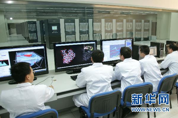 這是科研人員在對(duì)“天河一號(hào)”超級(jí)計(jì)算機(jī)進(jìn)行系統(tǒng)性能測(cè)試(資料照片)。 新華社發(fā) (何書遠(yuǎn) 攝)