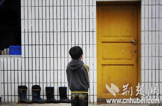 楊銀松站在老師門(mén)前。