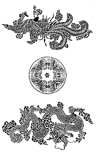 藍(lán)印花布遍及湖北全省,尤以天門(mén)藍(lán)印花布最負(fù)盛名。其特點(diǎn):1、藍(lán)與白的選擇,藍(lán)白兩色并非吉祥色,然而經(jīng)過(guò)藝人們的巧妙的藝術(shù)處理,使人感到清新明快;2、虛與實(shí)的結(jié)合:以點(diǎn)組成線(xiàn),以線(xiàn)組成面,若合若離,似為一體,實(shí)又分離。
